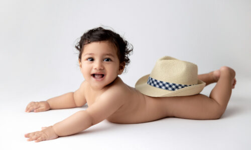 Only safe, baby-led posing — never forcing unnatural positions.